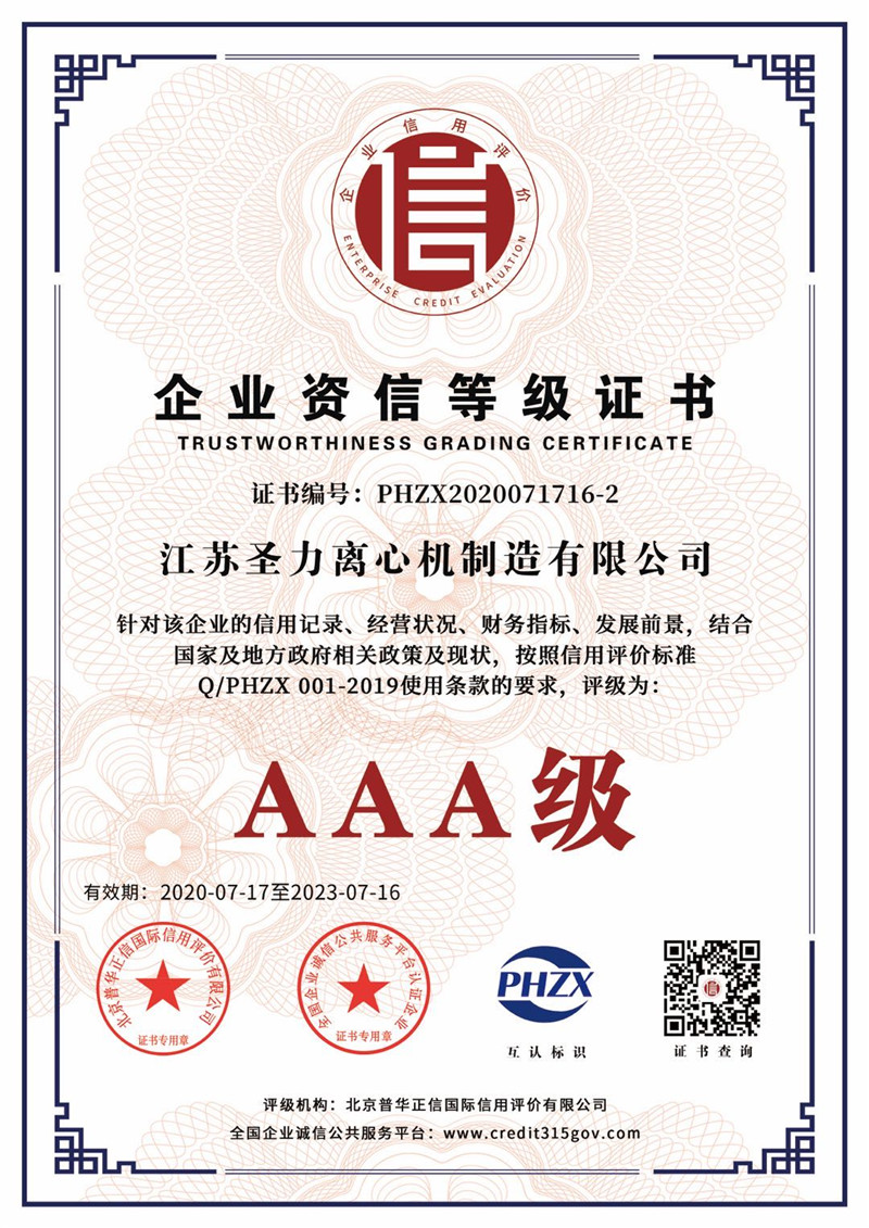 江蘇圣力離心機(jī)制造有限公司是國內(nèi)分離機(jī)械行業(yè)中主要的離心機(jī)生產(chǎn)企業(yè),對離心機(jī)的研究、設(shè)計、制造有多年的歷史,擁有齊全的設(shè)備、完善的檢測手段。公司已通過IS09000國際質(zhì)量體系認(rèn)證、ISO14001環(huán)境管理體系認(rèn)證、ISO45001:2018職業(yè)健康安全管理體系認(rèn)證和CE認(rèn)證,是江蘇省高新技術(shù)企業(yè),曾榮獲國家和地方多項榮譽(yù)稱號。